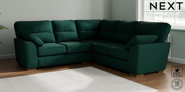 7.2.10 Stamford Highback Medium Corner Sofa - Universal Plush Velvet Easy Clean Bottle Green Large Square Angle - Mid | Made Click here to use our website with more accessibility support, for example screen readers