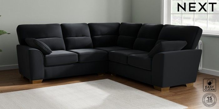 7.2.10 Stamford Highback Medium Corner Sofa - Universal Plush Velvet Easy Clean Charcoal Grey Large Square Angle - Brushed Brass | Made Click here to use our website with more accessibility support, for example screen readers