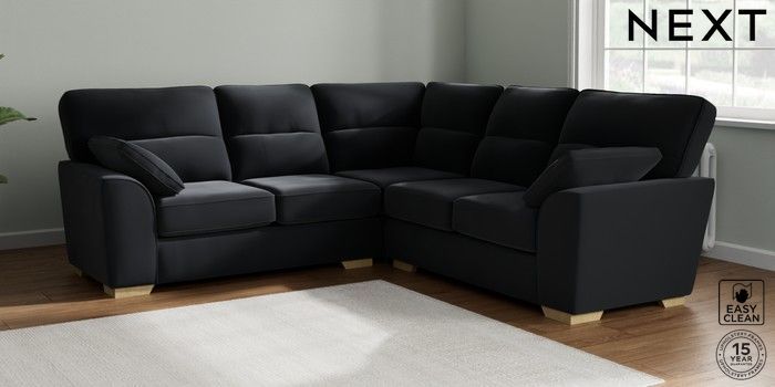 7.2.10 Stamford Highback Medium Corner Sofa - Universal Plush Velvet Easy Clean Charcoal Grey Large Square Angle - Light | Made Click here to use our website with more accessibility support, for example screen readers