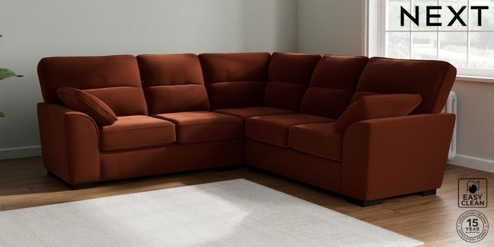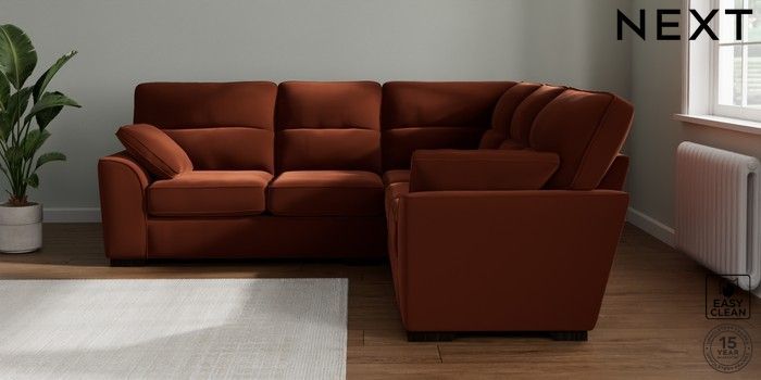 7.2.10 Stamford Highback Medium Corner Sofa - Universal Plush Velvet Easy Clean Ginger Orange Large Square Angle - Dark | Made Click here to use our website with more accessibility support, for example screen readers