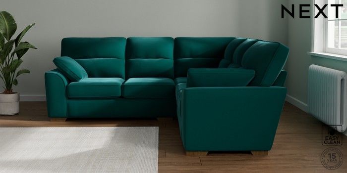 7.2.10 Stamford Highback Medium Corner Sofa - Universal Plush Velvet Easy Clean Juniper Green Large Square Angle - Mid | Made Click here to use our website with more accessibility support, for example screen readers