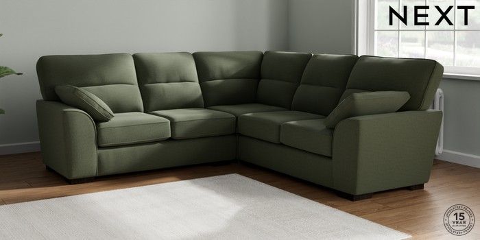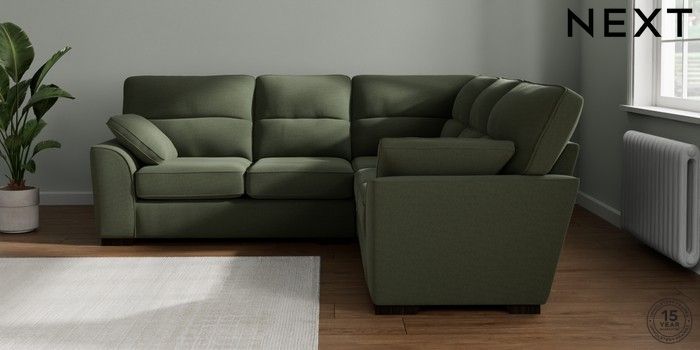 7.2.10 Stamford Highback Medium Corner Sofa - Universal Relaxed Linen Look Dark Green Large Square Angle - Dark | Made Click here to use our website with more accessibility support, for example screen readers