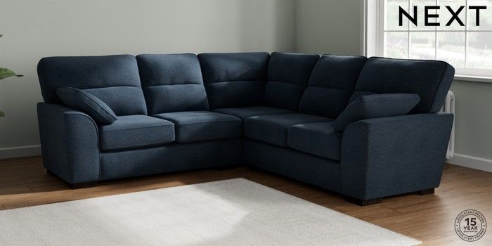 7.2.10 Stamford Highback Medium Corner Sofa - Universal Ripple Chenille Dark Blue Large Square Angle - Dark | Made Click here to use our website with more accessibility support, for example screen readers