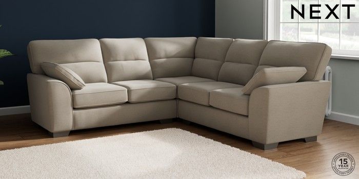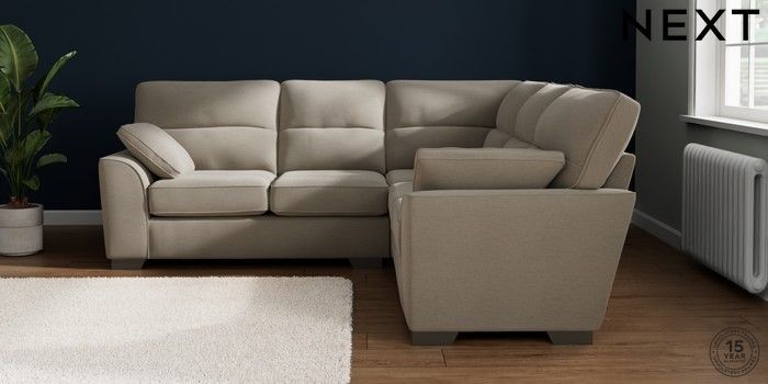 7.2.10 Stamford Highback Medium Corner Sofa - Universal Ripple Chenille Light Natural Large Square Angle - Gunmetal | Made Click here to use our website with more accessibility support, for example screen readers