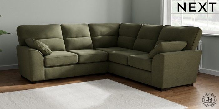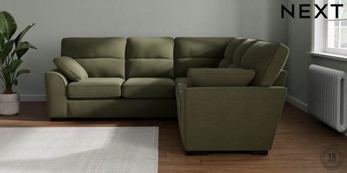 7.2.10 Stamford Highback Medium Corner Sofa - Universal Ripple Chenille Mid Moss Green Large Square Angle - Dark | Made Click here to use our website with more accessibility support, for example screen readers