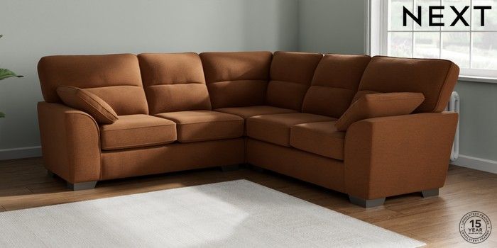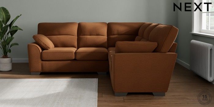 7.2.10 Stamford Highback Medium Corner Sofa - Universal Ripple Chenille Mid Rust Brown Large Square Angle - Gunmetal | Made Click here to use our website with more accessibility support, for example screen readers