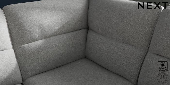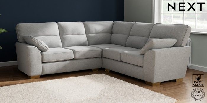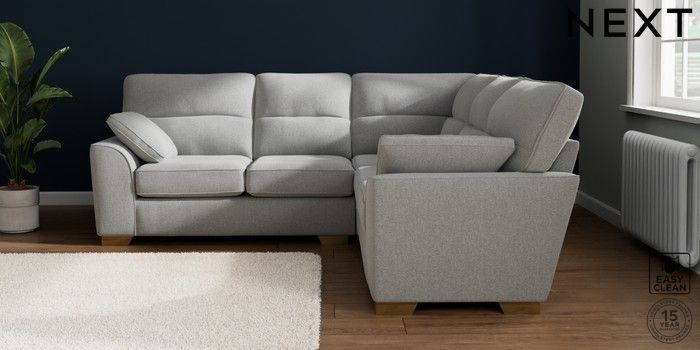 7.2.10 Stamford Highback Medium Corner Sofa - Universal Tweedy Blend Easy Clean Light Silver Grey Large Square Angle - Brushed Brass | Made Click here to use our website with more accessibility support, for example screen readers
