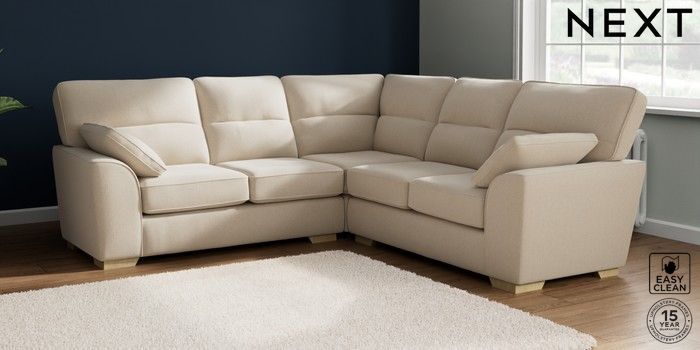 7.2.10 Stamford Highback Medium Corner Sofa - Universal Tweedy Blend Easy Clean Oyster Large Square Angle - Light | Made Click here to use our website with more accessibility support, for example screen readers