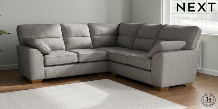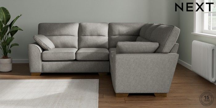 7.2.10 Stamford Highback Medium Corner Sofa - Universal Tweedy Chenille Mid Grey Large Square Angle - Brushed Brass | Made Click here to use our website with more accessibility support, for example screen readers
