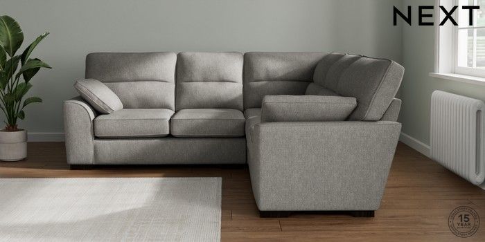7.2.10 Stamford Highback Medium Corner Sofa - Universal Tweedy Chenille Mid Grey Large Square Angle - Dark | Made Click here to use our website with more accessibility support, for example screen readers