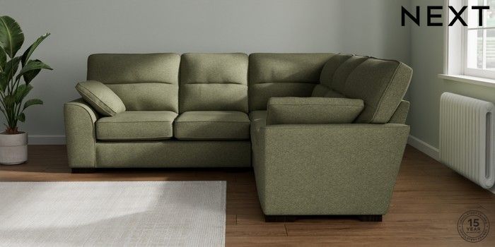 7.2.10 Stamford Highback Medium Corner Sofa - Universal Tweedy Chenille Mid Moss Green Large Square Angle - Dark | Made Click here to use our website with more accessibility support, for example screen readers