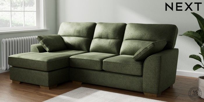 7.2.10 Stamford Highback Medium Sofa Chaise - Left Hand Boucle Chenille Dark Moss Green Large Square Angle - Mid | Made Click here to use our website with more accessibility support, for example screen readers