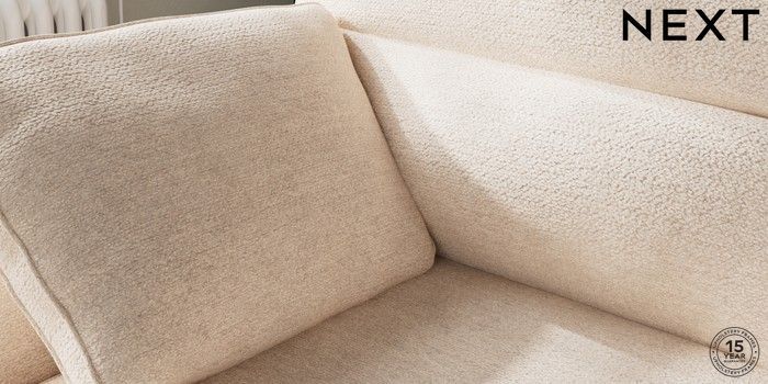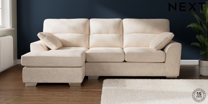 7.2.10 Stamford Highback Medium Sofa Chaise - Left Hand Boucle Chenille Oyster Large Square Angle - Chrome Metal | Made Click here to use our website with more accessibility support, for example screen readers