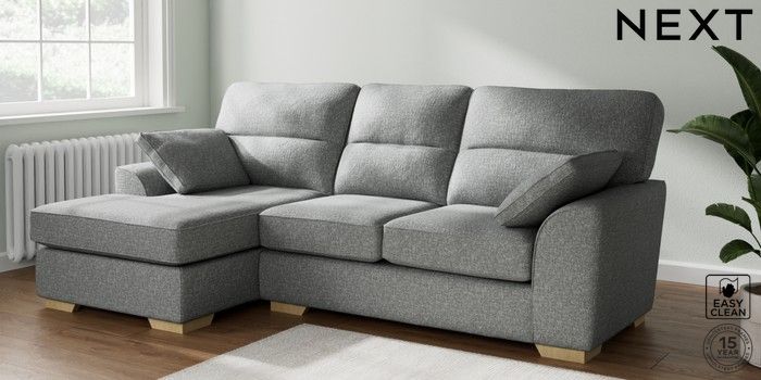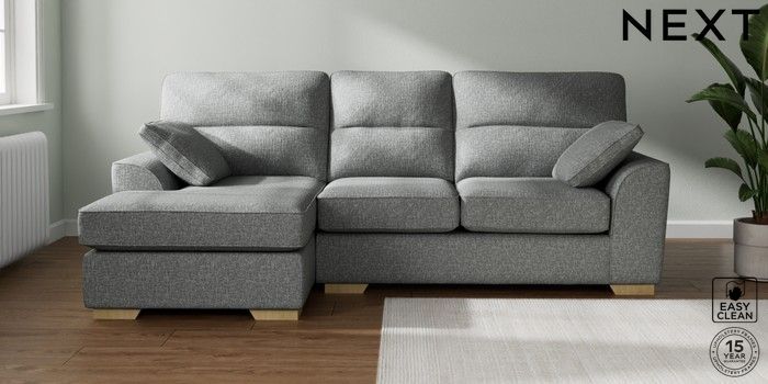 7.2.10 Stamford Highback Medium Sofa Chaise - Left Hand Chunky Boucle Easy Clean Mid Grey Large Square Angle - Light | Made Click here to use our website with more accessibility support, for example screen readers