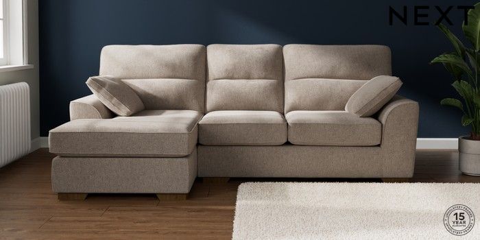 7.2.10 Stamford Highback Medium Sofa Chaise - Left Hand Chunky Chenille Light Dove Large Square Angle - Mid | Made Click here to use our website with more accessibility support, for example screen readers