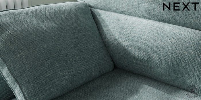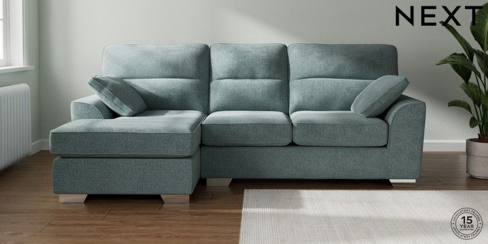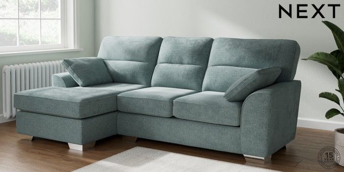 7.2.10 Stamford Highback Medium Sofa Chaise - Left Hand Chunky Chenille Light Teal Green Large Square Angle - Chrome Metal | Made Click here to use our website with more accessibility support, for example screen readers