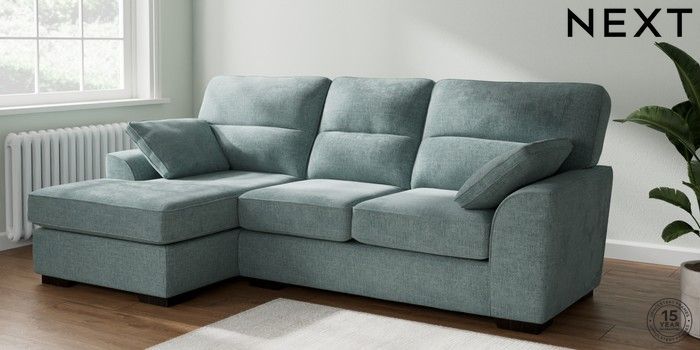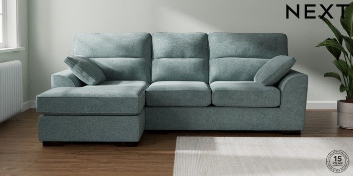 7.2.10 Stamford Highback Medium Sofa Chaise - Left Hand Chunky Chenille Light Teal Green Large Square Angle - Dark | Made Click here to use our website with more accessibility support, for example screen readers