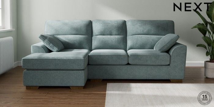 7.2.10 Stamford Highback Medium Sofa Chaise - Left Hand Chunky Chenille Light Teal Green Large Square Angle - Mid | Made Click here to use our website with more accessibility support, for example screen readers