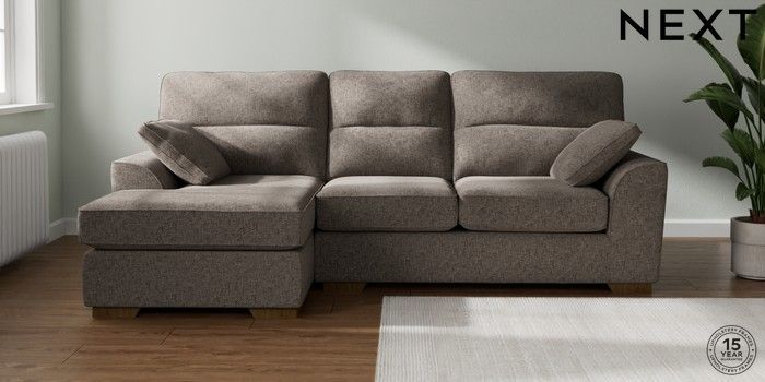 7.2.10 Stamford Highback Medium Sofa Chaise - Left Hand Chunky Chenille Mink Brown Large Square Angle - Mid | Made Click here to use our website with more accessibility support, for example screen readers