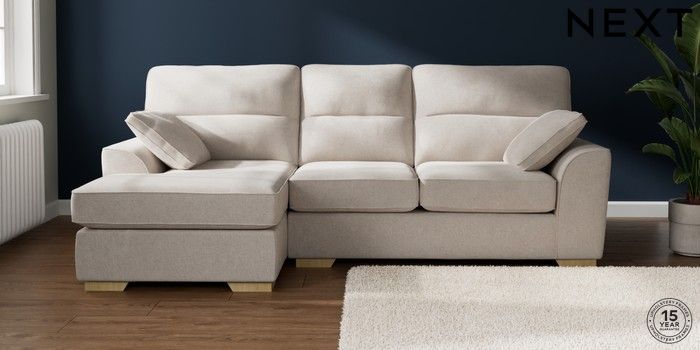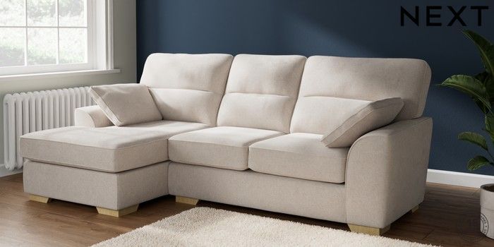 7.2.10 Stamford Highback Medium Sofa Chaise - Left Hand Chunky Chenille Oyster Large Square Angle - Light | Made Click here to use our website with more accessibility support, for example screen readers