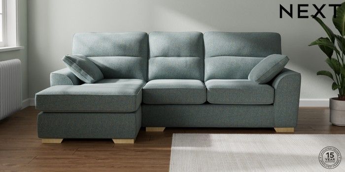 7.2.10 Stamford Highback Medium Sofa Chaise - Left Hand Chunky Marl Mid Blue Large Square Angle - Light | Made Click here to use our website with more accessibility support, for example screen readers