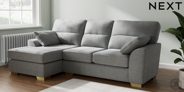 7.2.10 Stamford Highback Medium Sofa Chaise - Left Hand Chunky Marl Mid Grey Large Square Angle - Brushed Brass | Made Click here to use our website with more accessibility support, for example screen readers