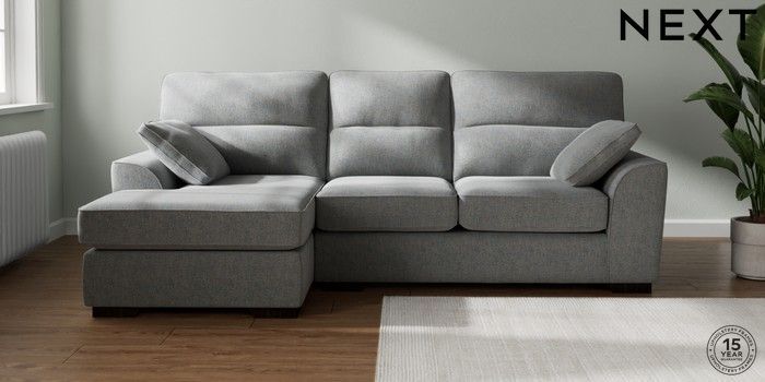 7.2.10 Stamford Highback Medium Sofa Chaise - Left Hand Chunky Marl Mid Grey Large Square Angle - Dark | Made Click here to use our website with more accessibility support, for example screen readers