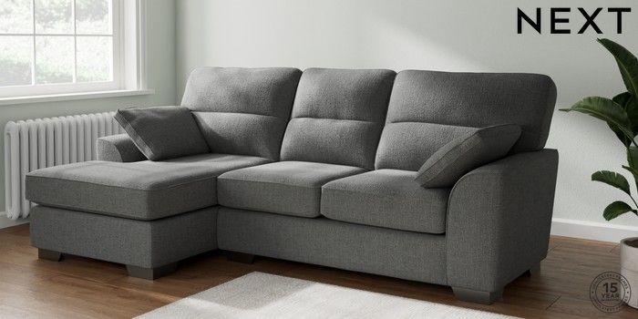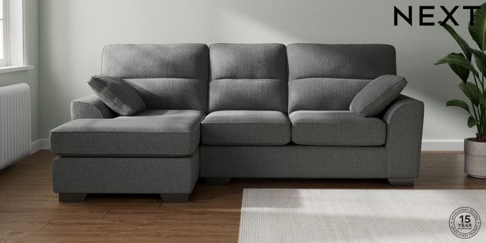 7.2.10 Stamford Highback Medium Sofa Chaise - Left Hand Chunky Texture Dark Grey Large Square Angle - Gunmetal | Made Click here to use our website with more accessibility support, for example screen readers