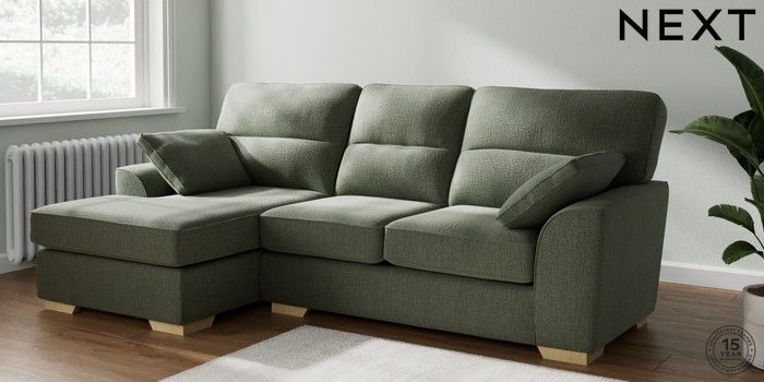 7.2.10 Stamford Highback Medium Sofa Chaise - Left Hand Chunky Texture Mid Forest Green Large Square Angle - Light | Made Click here to use our website with more accessibility support, for example screen readers