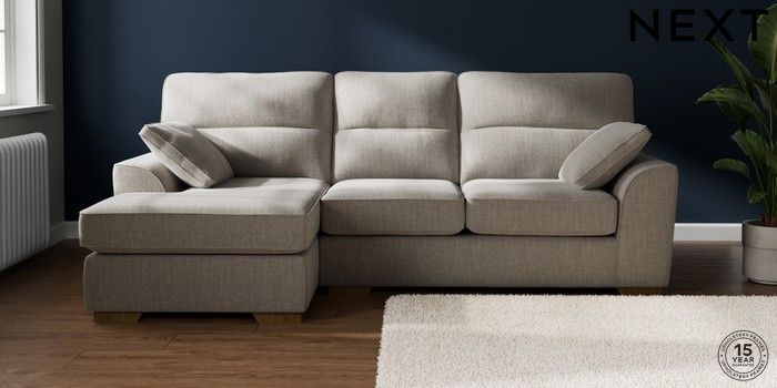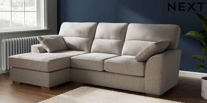 7.2.10 Stamford Highback Medium Sofa Chaise - Left Hand Chunky Weave Dove Grey Large Square Angle - Mid | Made Click here to use our website with more accessibility support, for example screen readers