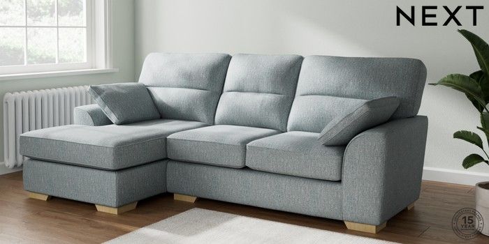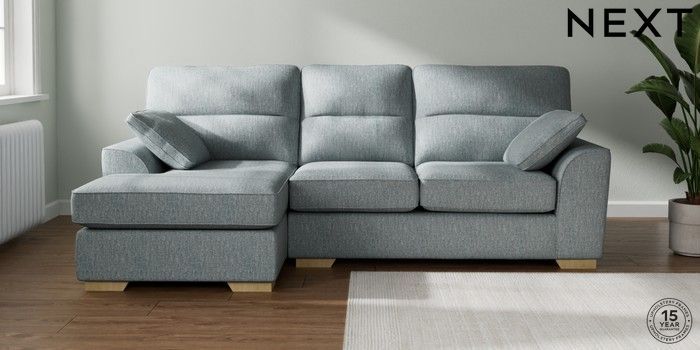 7.2.10 Stamford Highback Medium Sofa Chaise - Left Hand Chunky Weave Mid Blue Large Square Angle - Light | Made Click here to use our website with more accessibility support, for example screen readers