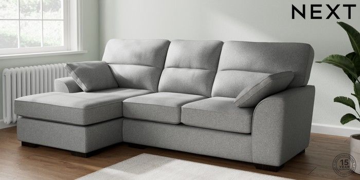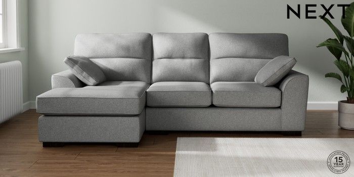 7.2.10 Stamford Highback Medium Sofa Chaise - Left Hand Chunky Weave Mid Grey Large Square Angle - Dark | Made Click here to use our website with more accessibility support, for example screen readers