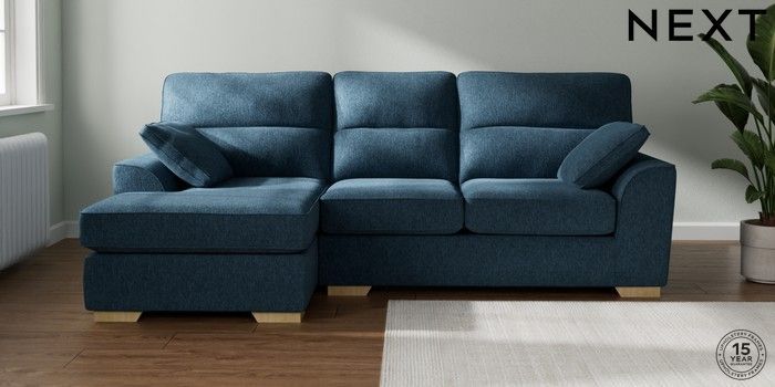 7.2.10 Stamford Highback Medium Sofa Chaise - Left Hand Cotswold Chenille Dark Blue Large Square Angle - Light | Made Click here to use our website with more accessibility support, for example screen readers