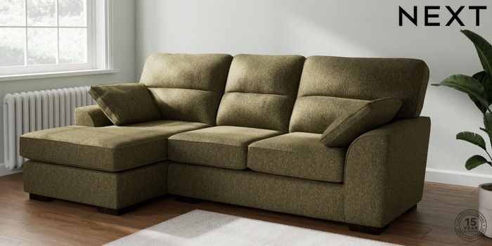 7.2.10 Stamford Highback Medium Sofa Chaise - Left Hand Cotswold Chenille Dark Green Large Square Angle - Dark | Made Click here to use our website with more accessibility support, for example screen readers