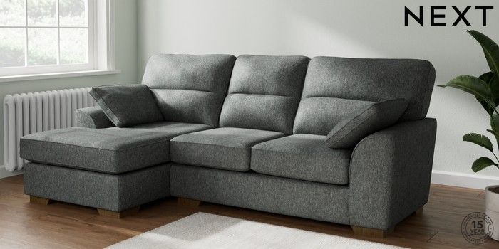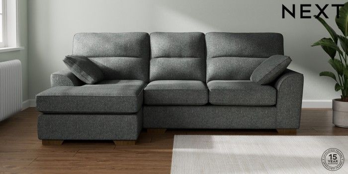 7.2.10 Stamford Highback Medium Sofa Chaise - Left Hand Cotswold Chenille Dark Grey Large Square Angle - Mid | Made Click here to use our website with more accessibility support, for example screen readers