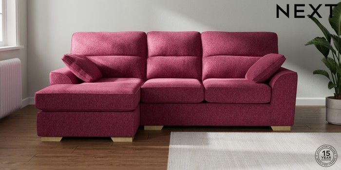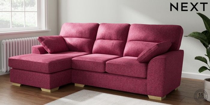 7.2.10 Stamford Highback Medium Sofa Chaise - Left Hand Cotswold Chenille Dark Raspberry Pink Large Square Angle - Light | Made Click here to use our website with more accessibility support, for example screen readers