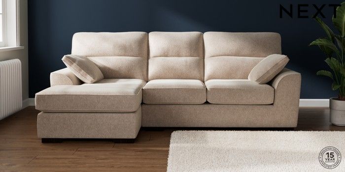 7.2.10 Stamford Highback Medium Sofa Chaise - Left Hand Cotswold Chenille Light Natural Large Square Angle - Dark | Made Click here to use our website with more accessibility support, for example screen readers