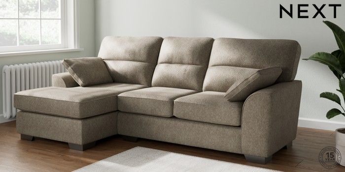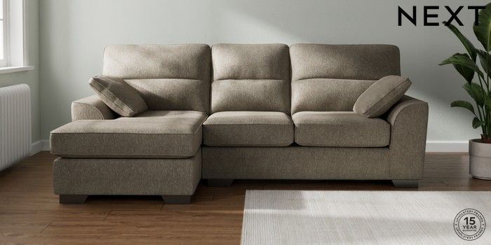 7.2.10 Stamford Highback Medium Sofa Chaise - Left Hand Cotswold Chenille Mid Mink Brown Large Square Angle - Gunmetal | Made Click here to use our website with more accessibility support, for example screen readers