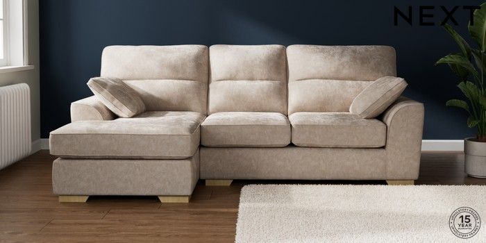 7.2.10 Stamford Highback Medium Sofa Chaise - Left Hand Distressed Velour Mid Natural Large Square Angle - Light | Made Click here to use our website with more accessibility support, for example screen readers