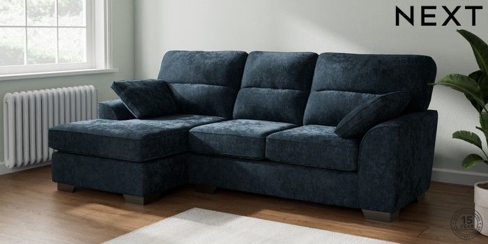 7.2.10 Stamford Highback Medium Sofa Chaise - Left Hand Distressed Velour Midnight Blue Large Square Angle - Gunmetal | Made Click here to use our website with more accessibility support, for example screen readers