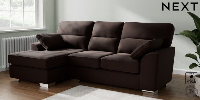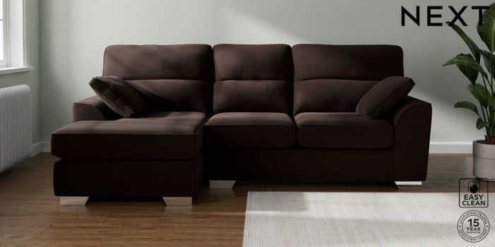 7.2.10 Stamford Highback Medium Sofa Chaise - Left Hand Fine Chenille Easy Clean Chocolate Brown Large Square Angle - Chrome Metal | Made Click here to use our website with more accessibility support, for example screen readers