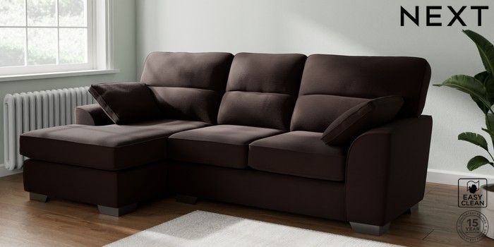 7.2.10 Stamford Highback Medium Sofa Chaise - Left Hand Fine Chenille Easy Clean Chocolate Brown Large Square Angle - Gunmetal | Made Click here to use our website with more accessibility support, for example screen readers