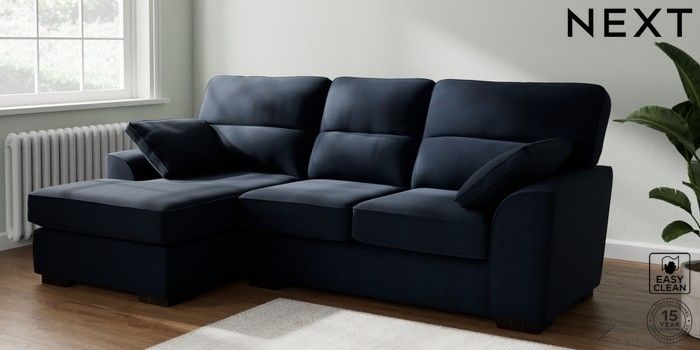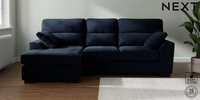 7.2.10 Stamford Highback Medium Sofa Chaise - Left Hand Fine Chenille Easy Clean Dark Navy Blue Large Square Angle - Dark | Made Click here to use our website with more accessibility support, for example screen readers