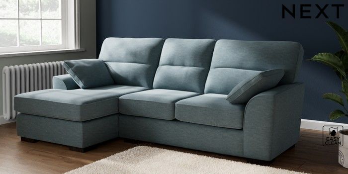 7.2.10 Stamford Highback Medium Sofa Chaise - Left Hand Fine Chenille Easy Clean Mid Blue Large Square Angle - Dark | Made Click here to use our website with more accessibility support, for example screen readers