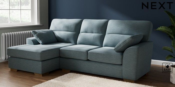 7.2.10 Stamford Highback Medium Sofa Chaise - Left Hand Fine Chenille Easy Clean Mid Blue Large Square Angle - Mid | Made Click here to use our website with more accessibility support, for example screen readers