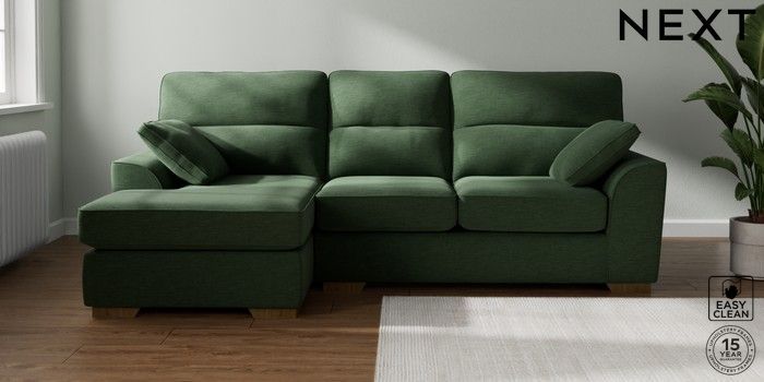 7.2.10 Stamford Highback Medium Sofa Chaise - Left Hand Fine Chenille Easy Clean Mid Khaki Green Large Square Angle - Mid | Made Click here to use our website with more accessibility support, for example screen readers