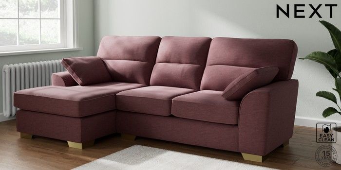 7.2.10 Stamford Highback Medium Sofa Chaise - Left Hand Fine Chenille Easy Clean Mid Mulberry Purple Large Square Angle - Brushed Brass | Made Click here to use our website with more accessibility support, for example screen readers