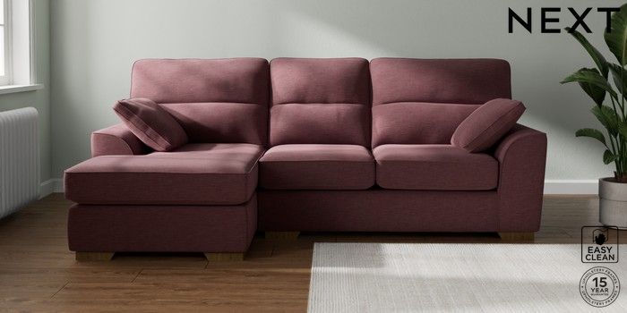 7.2.10 Stamford Highback Medium Sofa Chaise - Left Hand Fine Chenille Easy Clean Mid Mulberry Purple Large Square Angle - Mid | Made Click here to use our website with more accessibility support, for example screen readers