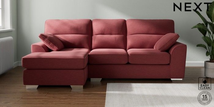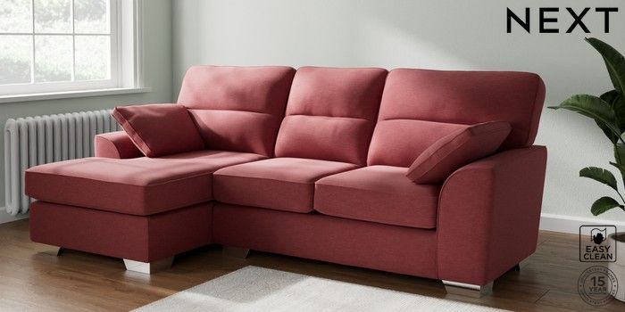 7.2.10 Stamford Highback Medium Sofa Chaise - Left Hand Fine Chenille Easy Clean Mid Pink Large Square Angle - Chrome Metal | Made Click here to use our website with more accessibility support, for example screen readers