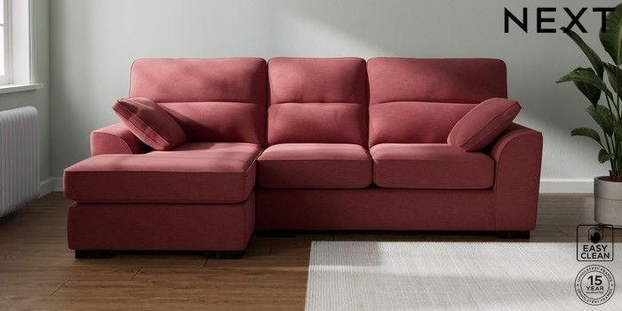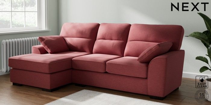 7.2.10 Stamford Highback Medium Sofa Chaise - Left Hand Fine Chenille Easy Clean Mid Pink Large Square Angle - Dark | Made Click here to use our website with more accessibility support, for example screen readers